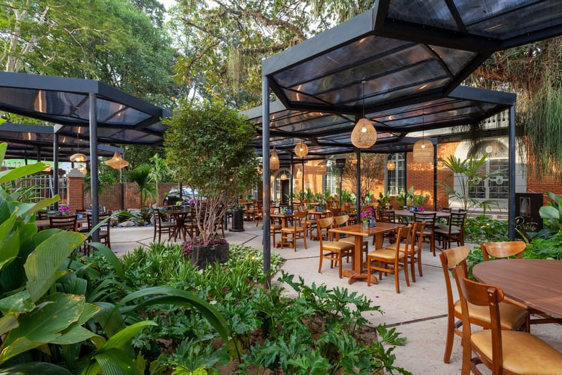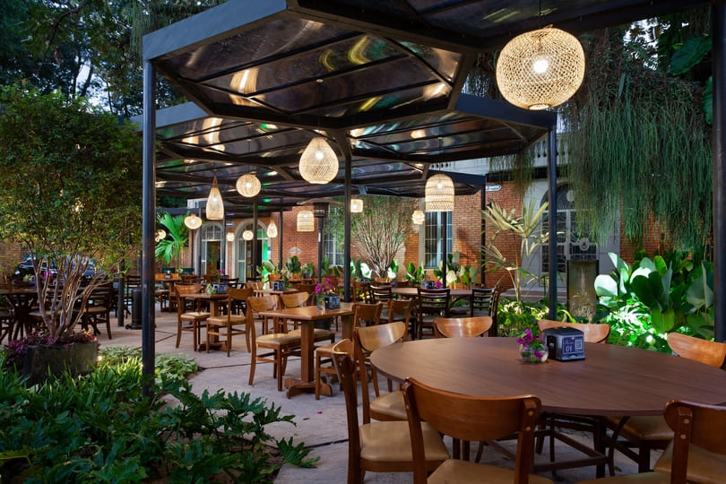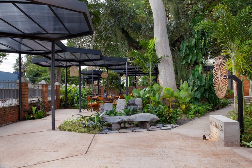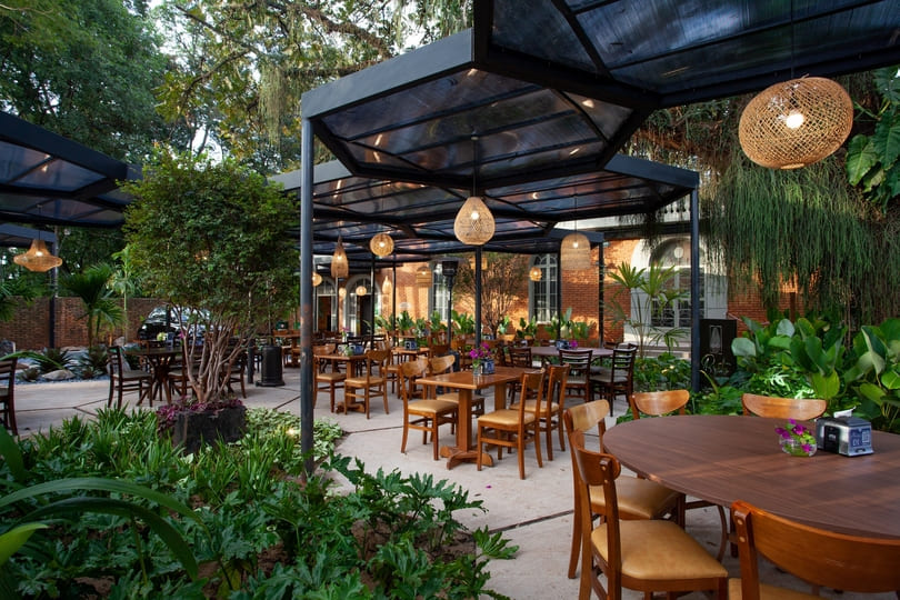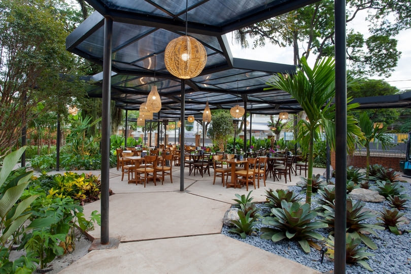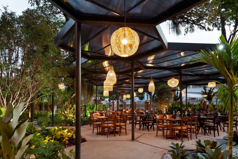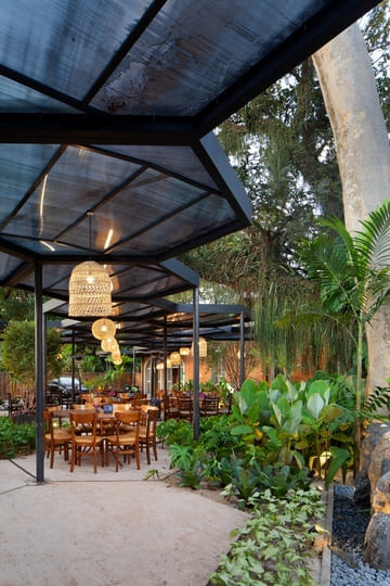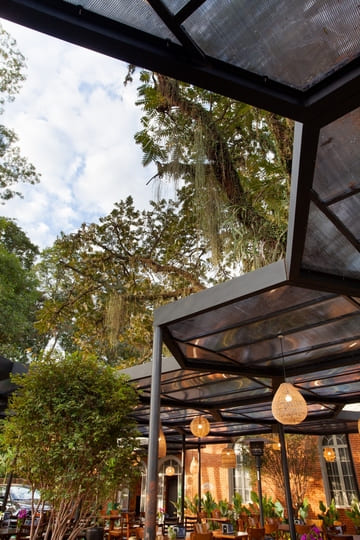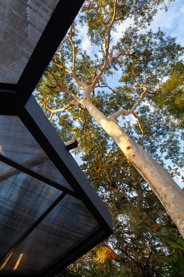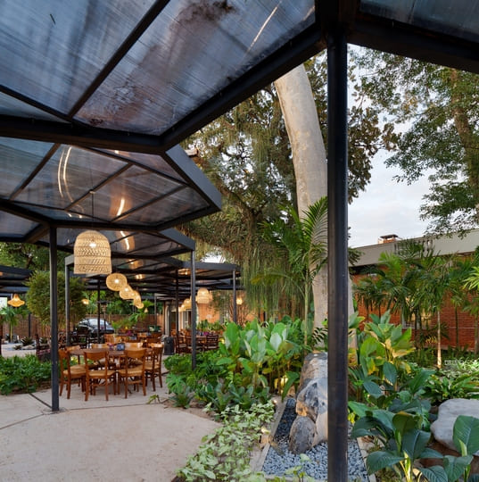 A camada externa de tijolos maciços pintados de branco funciona como uma segunda fachada para controle da insolação direta e o assentamento vazado entre os tijolos permite a ventilação natural cruzada. Além disso, os gradientes de aberturas formados pelos espaçamentos entre os tijolos também refletem os diferentes níveis de privacidade que são desejados para cada ambiente.